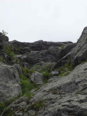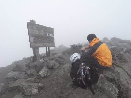 ガスに隠れていたけど、この待ちの間にも中央稜側で落石音が聞こえる。去年は聞かれなかったし安定したようにも見えたけど、中央稜やっぱりもうだめかな…。