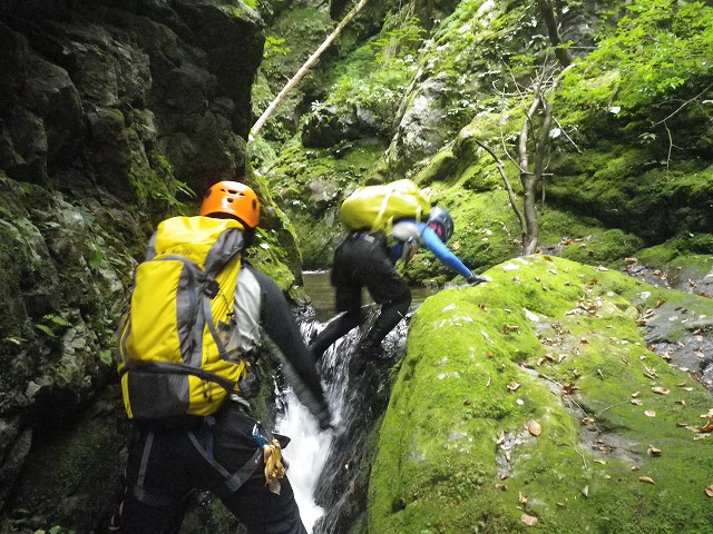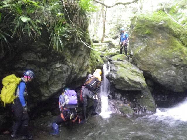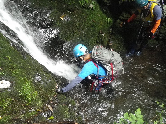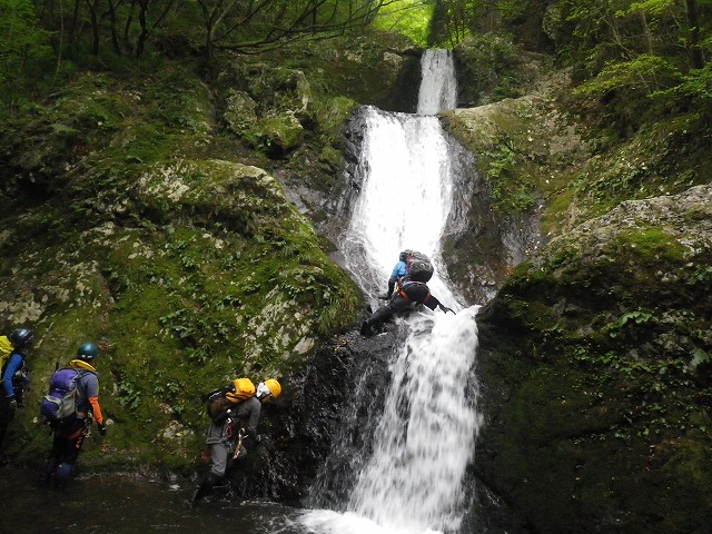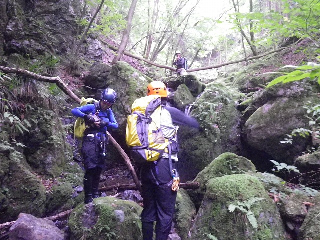 本日の入渓チームは我々だけであったが、帰り道に大滝周辺で「滝下り?」を楽しむ方々と出会う。
