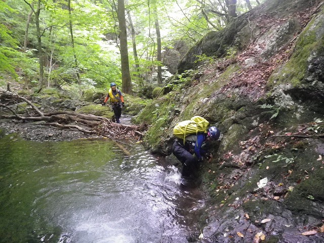 上を歩けばワケないのにあえての「へつり」&「水流突破」