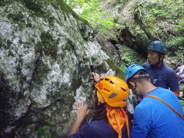 休憩時間中のハーケン講習3 ハーケン回収練習
