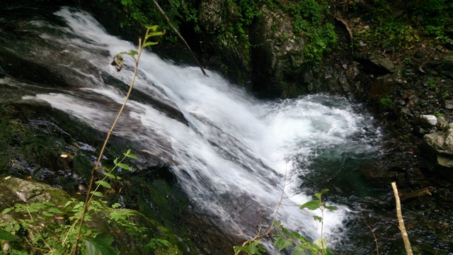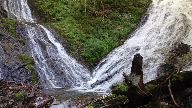 翌4時30半に起床、6時出発。少し倒木や低い枝が煩いと思うも、歩きだし10分、すぐに両門の滝が現れる。