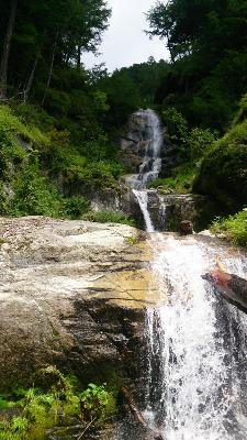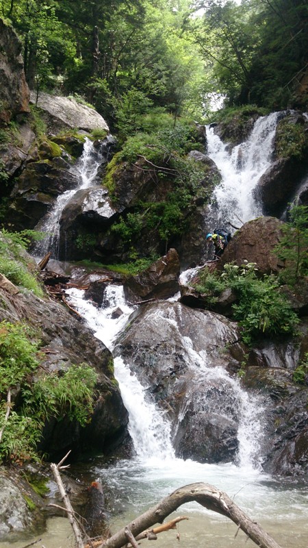 装備を整えて看板脇から入渓。ちょっとガレてる感もあるけど問題ない。曇天の所為か思っていた以上に水が冷たく感じ、体も動かない、いきなりシャワーは嫌だな。NさんとSさんは気にしていないのかさっさと行ってしまう。置いてけぼりを喰らわないよう頑張らねば…。