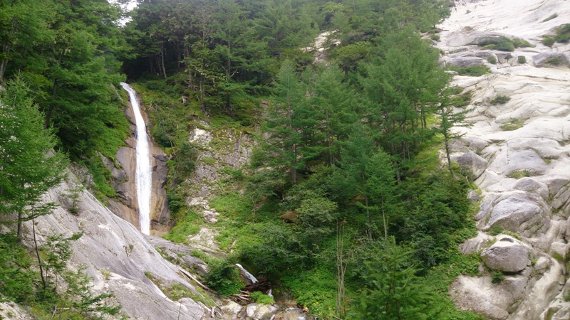 巻き道はしっかりしていて快適。一巻きした辺りのテラスから白い滝は再びお目見えした。きれい。樹林を挟んだ左岸のスラブにも圧巻。