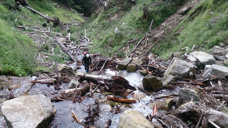 巻きから沢に戻るもすぐにまた巻き。おまけに倒木。。。そんなことで二俣。。。
