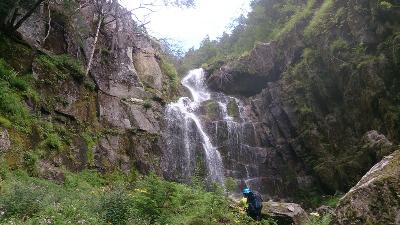 近づくと手前の滝で隠れてしまった。シャッターチャンスを逃したか。戻ってるわけにも行かず巻きに入る。