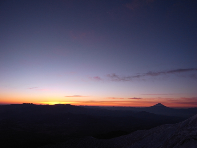 早すぎた、歩くのも。5時、赤岩の頭。真っ暗。少し風があった。