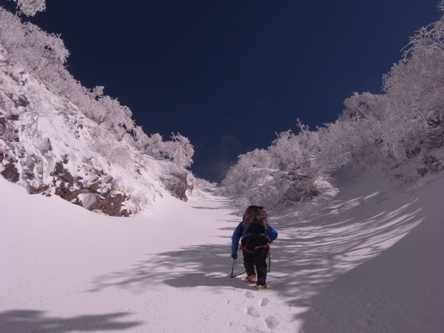 Nさんは広河原へは来たことはないし、アイスで稜線へ抜けたこともないので経験してもらいたいなとも思っていた。