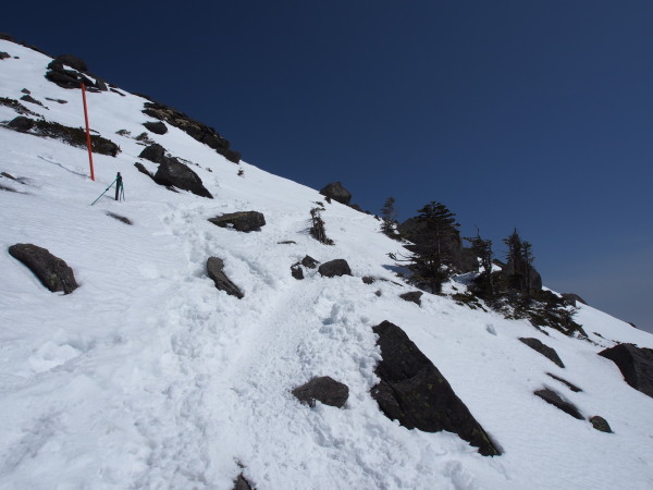 山頂近くなってやっと雪山らしくなる。 やっぱり山はいいな、と思うのはこんなときだ。