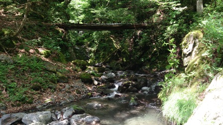 倒木で沢が歩きにくくなり、ワサビ田跡の脇で一気に高度を稼いで行くと奥の二俣へ到着。