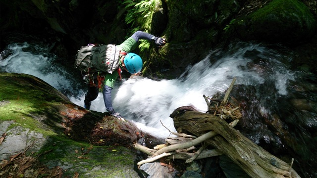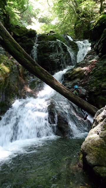 遠目にはどこから登ったものかと思っていたが、近づいたら水流から離れた右壁が階段状だった。写真では写ってない。