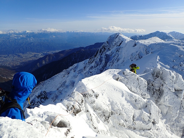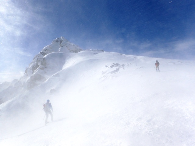 稜線間際に皆がアイゼンを装着していた意味を思い知る。