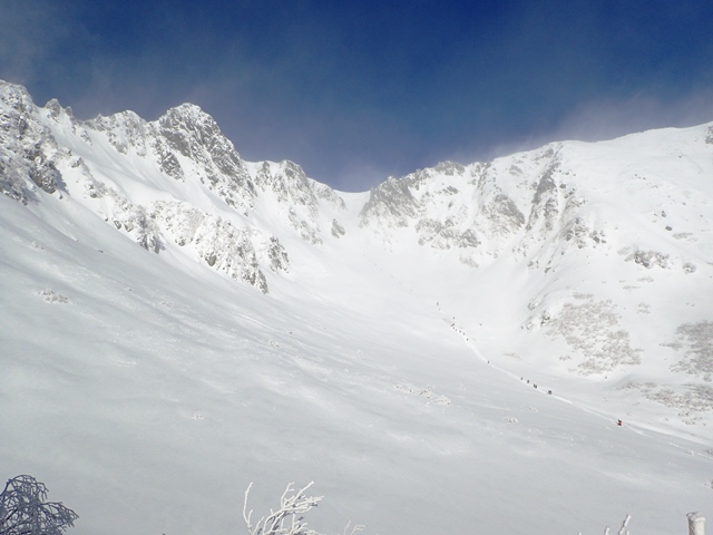我々以外はみんなアイゼンを装着して千畳敷のカールをラッセルして登っていく。