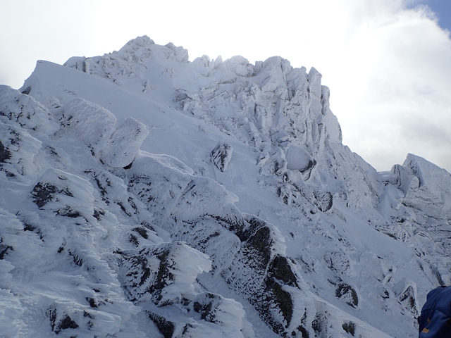 気を取り直してアイゼン・ハーネス装着して宝剣岳へ向かう。