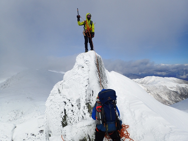 結局安全第一優先でザイルを2P使って頂上に立つ。