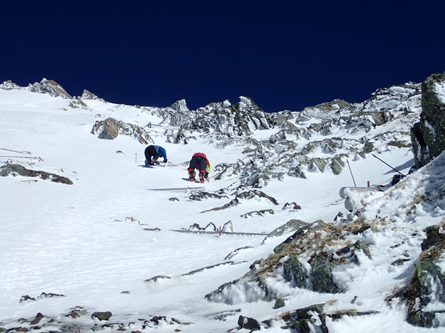 ほぼ標高3000mへ再び上がったのだが、二本の足とピッケルで三角形を作り姿勢を下げてやっと耐えられる強さの風が連続して吹き続ける。