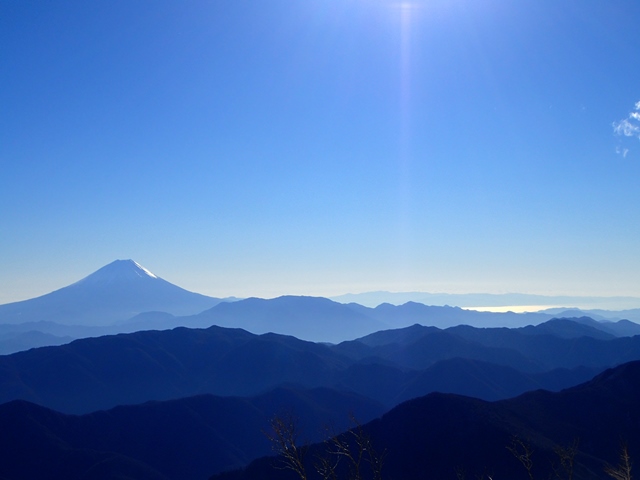 天気は快晴で富士山も駿河湾越しの伊豆半島もきれいに見えているが、風がとにかく強く、突風が吹くと下へ押し戻されてしまう。