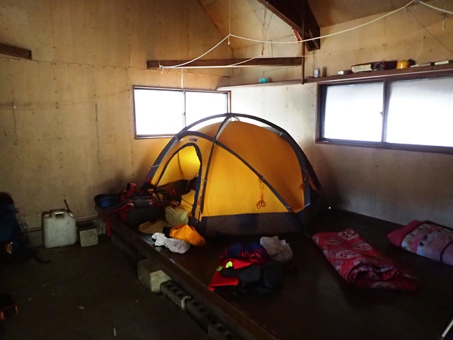 風の弱い東側に立っているとはいえ3000mを少し切る標高なので小屋の中も当然氷点下。