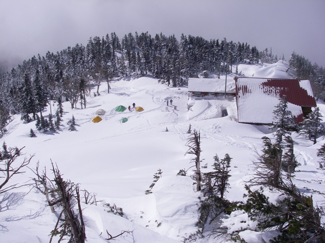 静かな朝を迎える。が、降雪は吹き溜まりで50〜60cmあった。