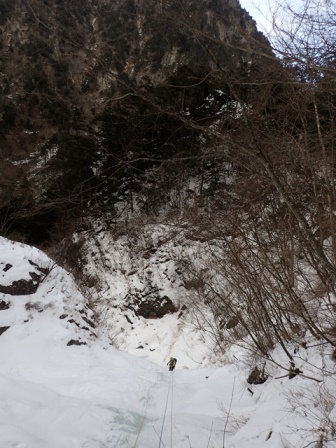 登る上での技術的な困難さは特段ないが、トップにせよフォローにせよアイススクリューの打ち込み、回収、氷瀑途中でのビレーなどゲレンデではできない経験ができる良いルートだった。