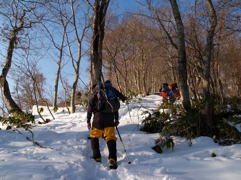途中、ザンゲ岩周辺の斜面で「雪上訓練」を予定していたがこの雪質では難しいと判断、取り敢えず雪上歩行を中心に