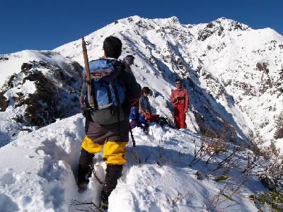 それにしても、いつ登っても西黒尾根はキツイ。多少パーティがばらけながらも12:30全員が頂上に集合する。