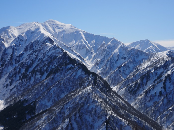 風も無く暖かい場所にザックを下ろし茂倉岳から谷川本峰の先まで晴れ渡った稜線を眺めながら「何処か山頂に立てたら良かったかな」などと思ったがここまでの大汗も悪くはなかったなと思い返した。