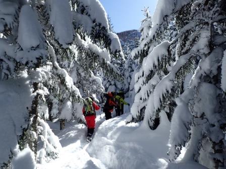 *11:00 取付き点まで樹林のラッセルが大変だった