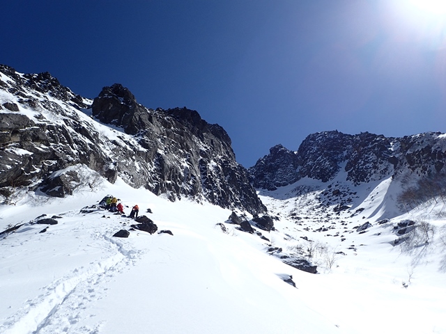 *11:30 取付きで武装してつぼ足でガレ沢を登る