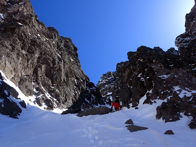 ・・・ 傾斜は登るほど急になる ・・・ 雪の状態は良かった