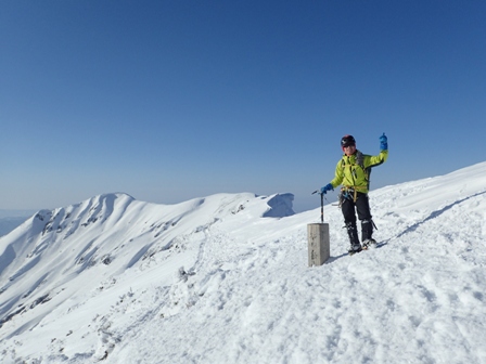 最高の天候なのに景色を楽しむ余裕が全く無かったのが少々残念だが、先行者のトレースなしで全行程を登るというオマケつきの充実した山行だった。 (文:NM)