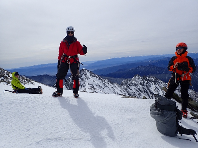 奥穂高岳山頂にはコースタイム通り9:00に到着。全装備を担ぎ上げたのは我々だけ?