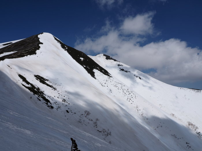5/3 柏原新道入口7:07−南尾根取付8:02−JP10:20−爺ヶ岳11:50−冷池山荘13:30