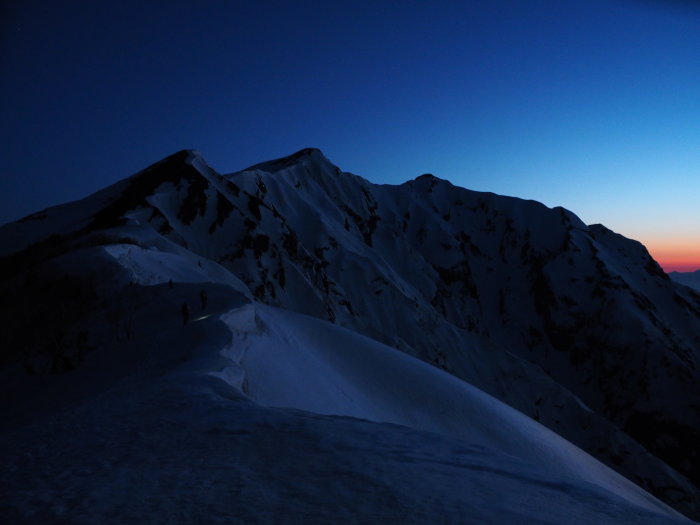 5/4 山荘発4:00−布引山4:58−鹿島槍山頂5:40−冷池山荘発7:57−登山口14:08