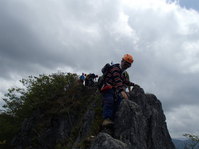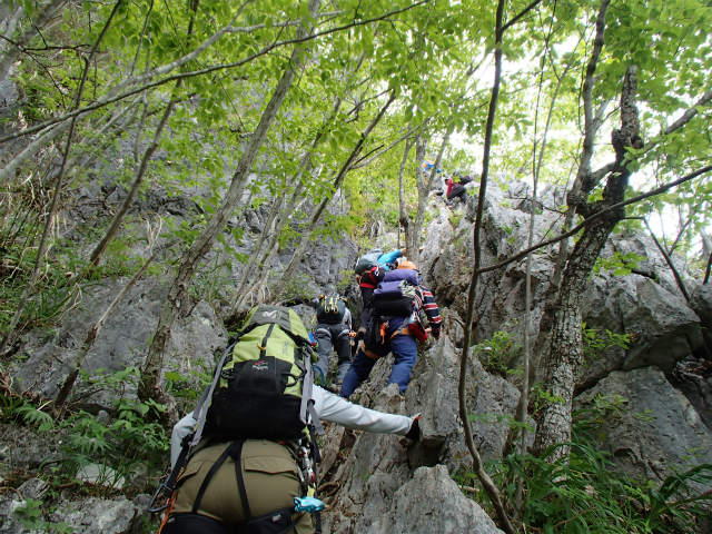 西岳から下山路は岩場の通過になるので緊張する場所もありますよ。余裕なメンバーも緊張のメンバーも安全に1歩1歩。