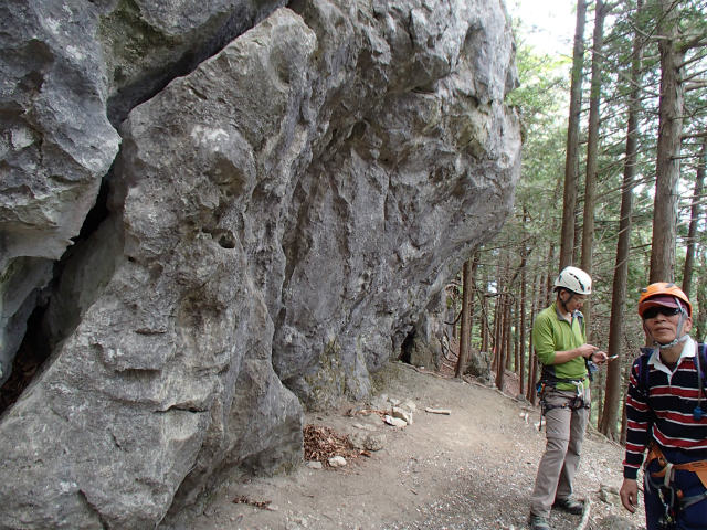 股峠には、フリークライミングのゲレンデがあり、祠エリア(誰もいなかった)では、あそこはアンダーで、あそこはカチ持ちで等、闘志を燃やすメンバーがいましたが、弓状バットレスというゲレンデを見学。こちらは賑わっていましたが、かなりハングをしておりレベルが高いのか、声が小さくメラメラしていた炎が消火されていた気がしたのは私だけだったでしょうか。