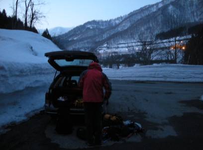 15日 19:00にY氏宅を出発し、無事に土樽駅に到着するとすでに駅には車がいっぱい。
